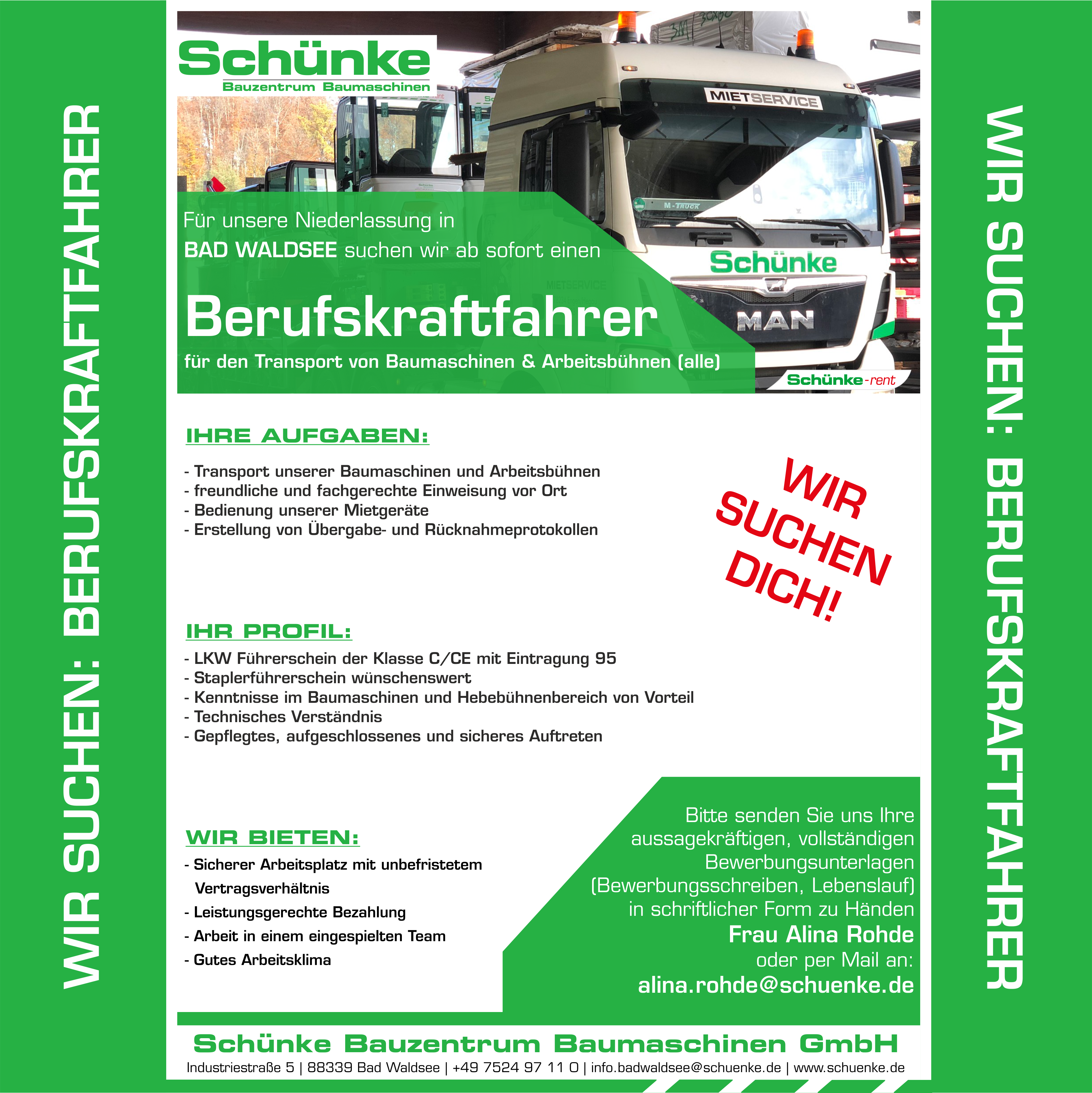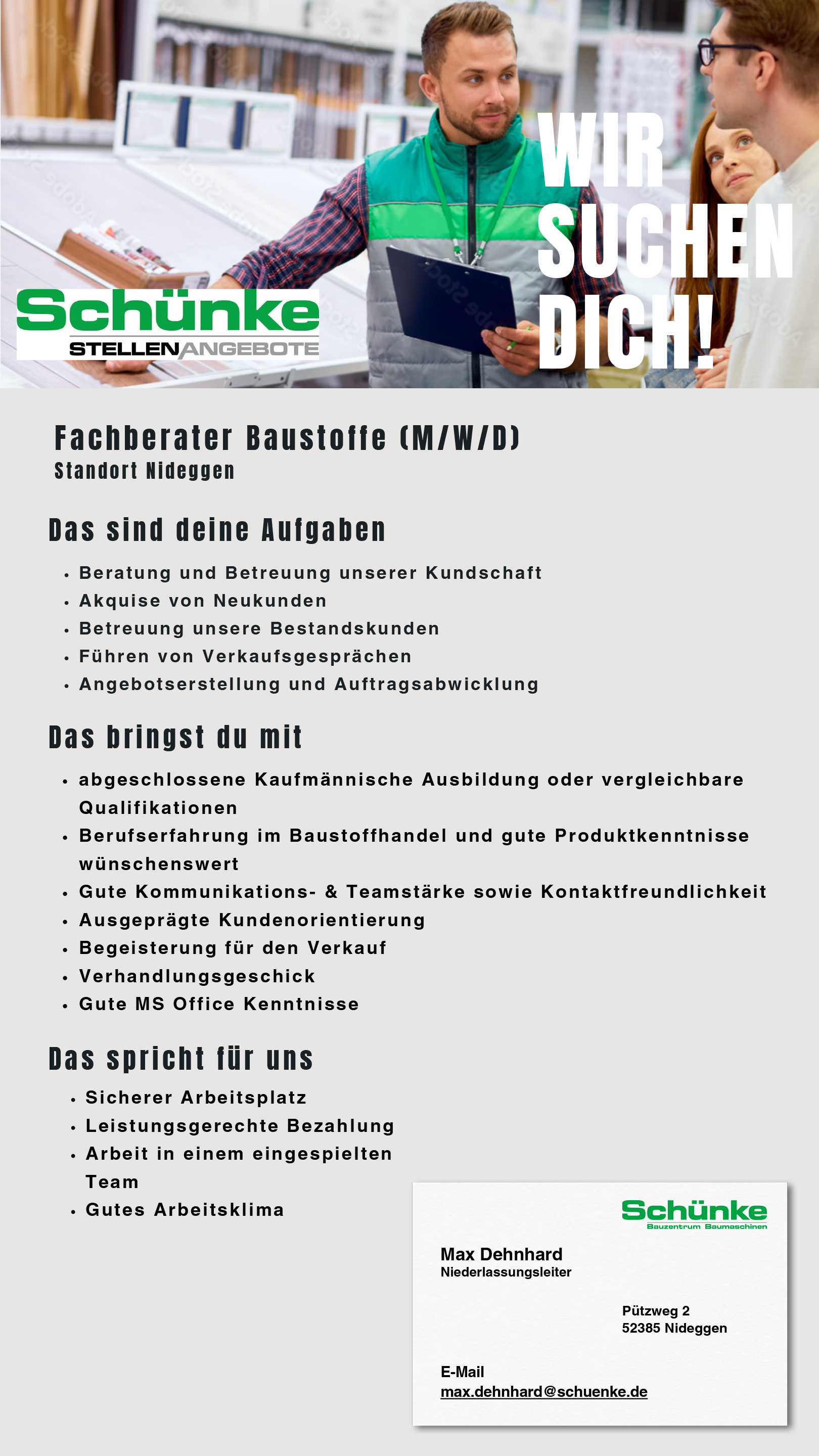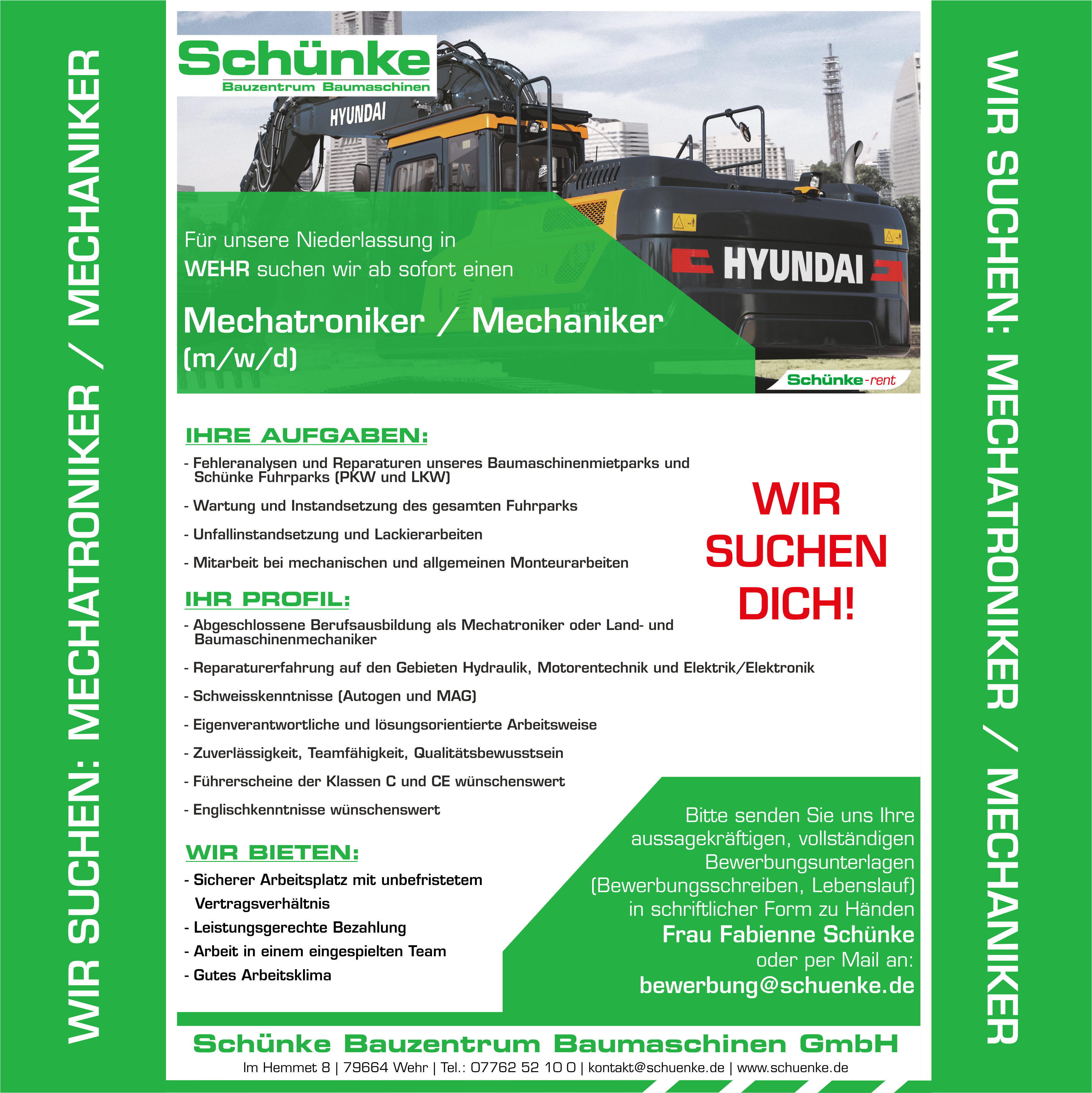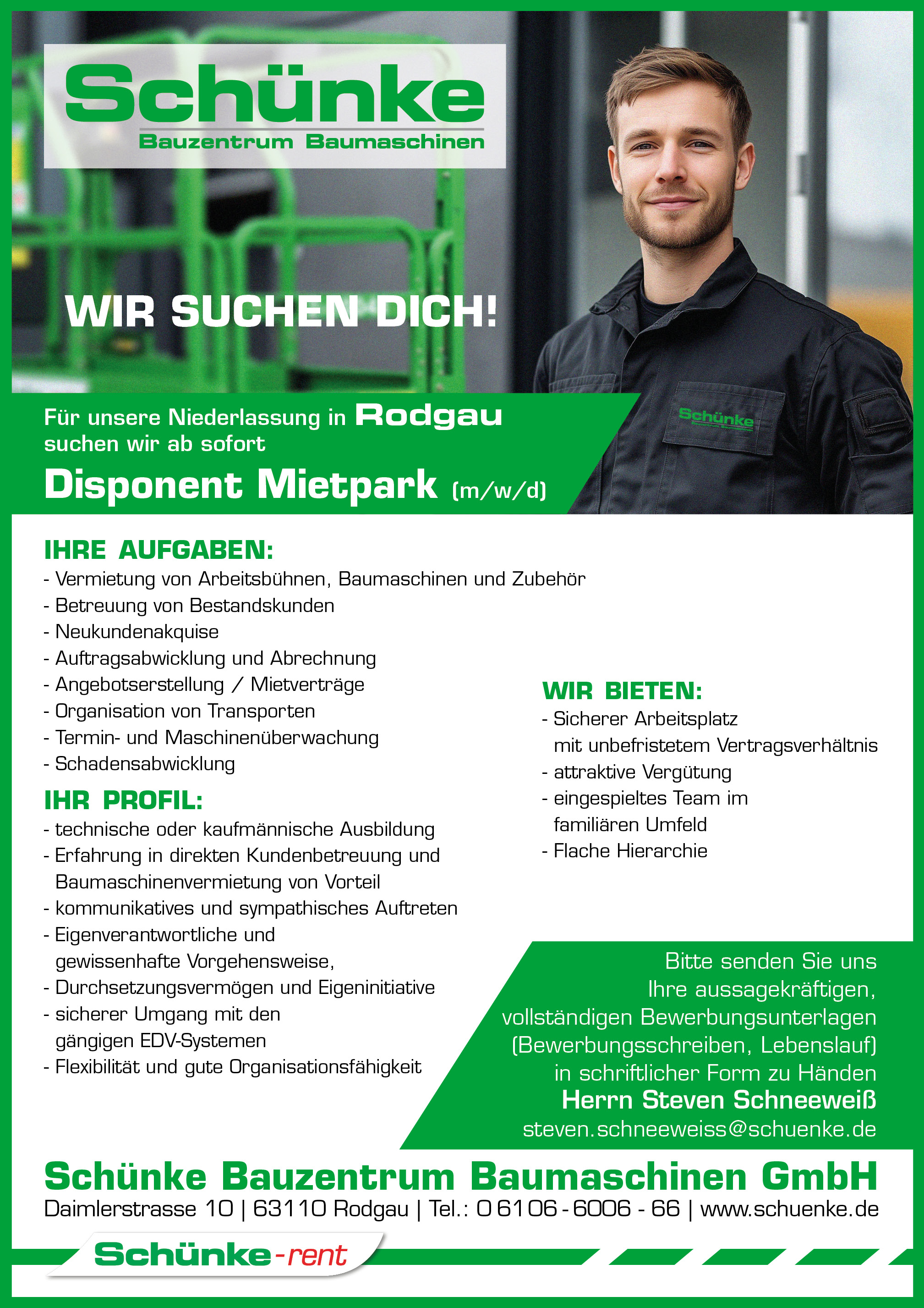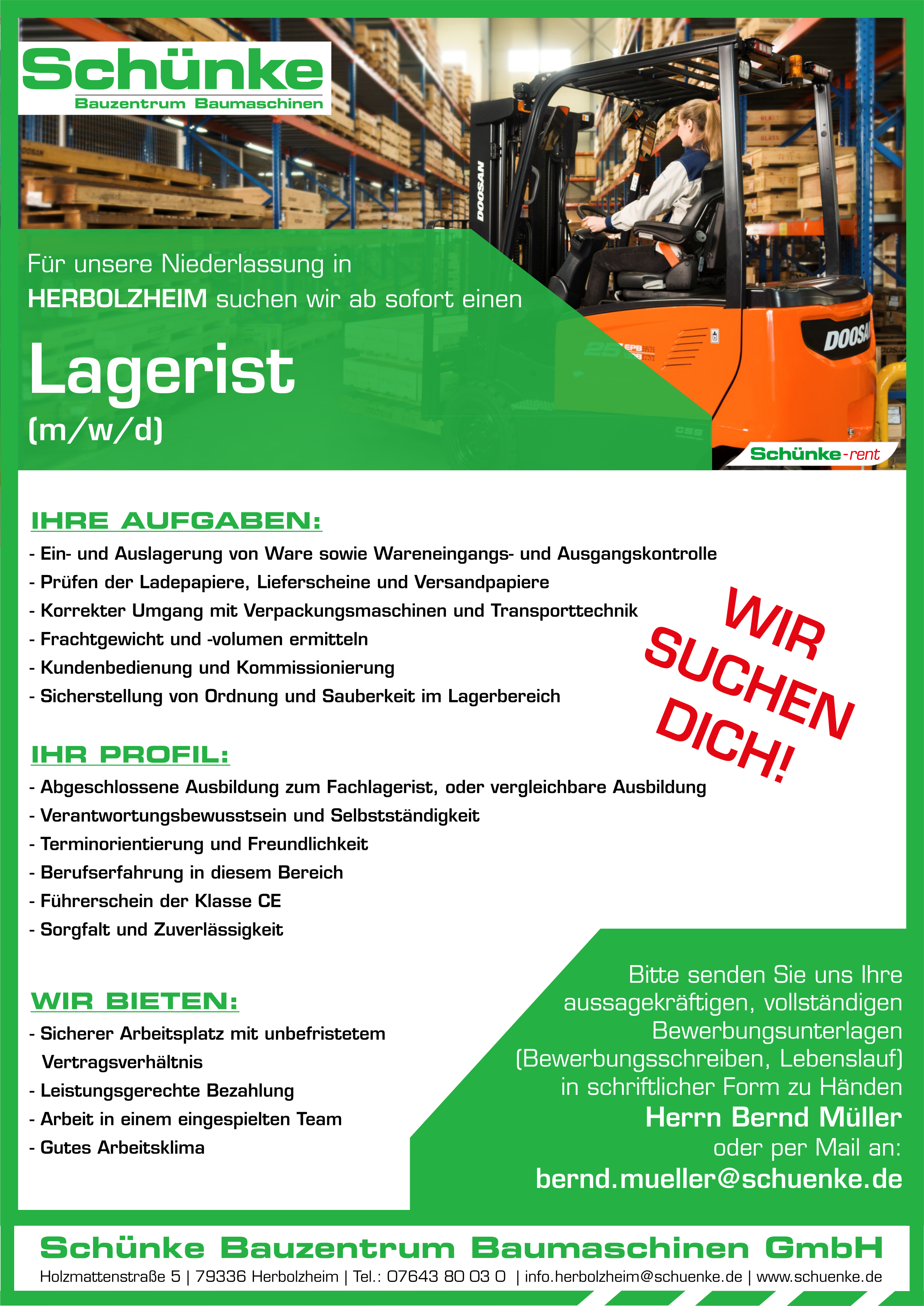 Aktuelle Stellenangebote Schünke Bauzentrum Baumaschinen GmbH